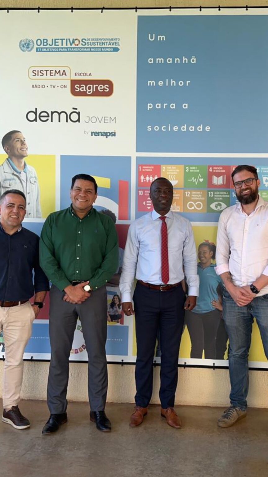 Na última segunda-feira (29), a Fundação Sagres recebeu, em seu Centro de Mídias, localizado em Aparecida de Goiânia, o presidente da Associação Nacional das Escolas Privadas da Angola, Antonio Pacavira. O dirigente esteve no Brasil para uma série de agendas, em Brasília e Goiás, visando a criação de uma organização para intercâmbio de experiências educativas oriundas de países de língua portuguesa. Esta visita ocorre na sequência de encontros realizados pela ministra da educação, Luísa Grilo, ainda no mès de dezembro de 2023.